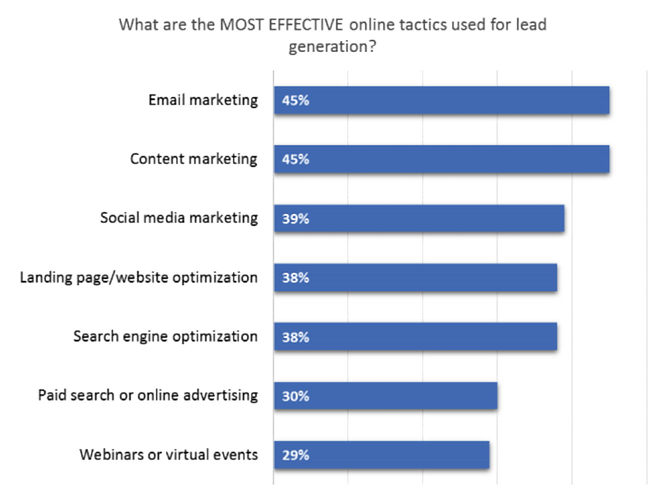 A report carried out by Ascend also revealed that email marketing is one of the most effective online tactics used for lead generation.
